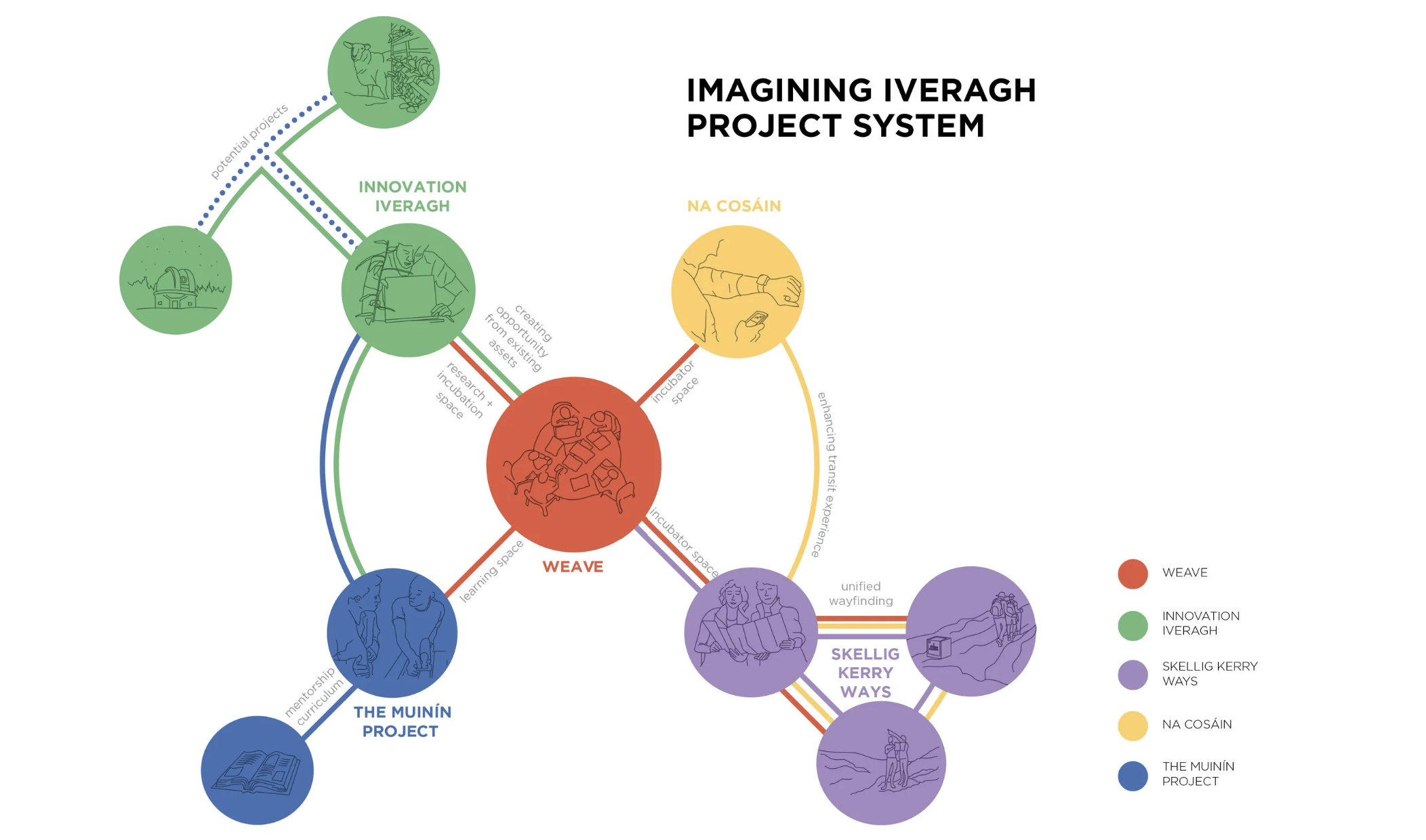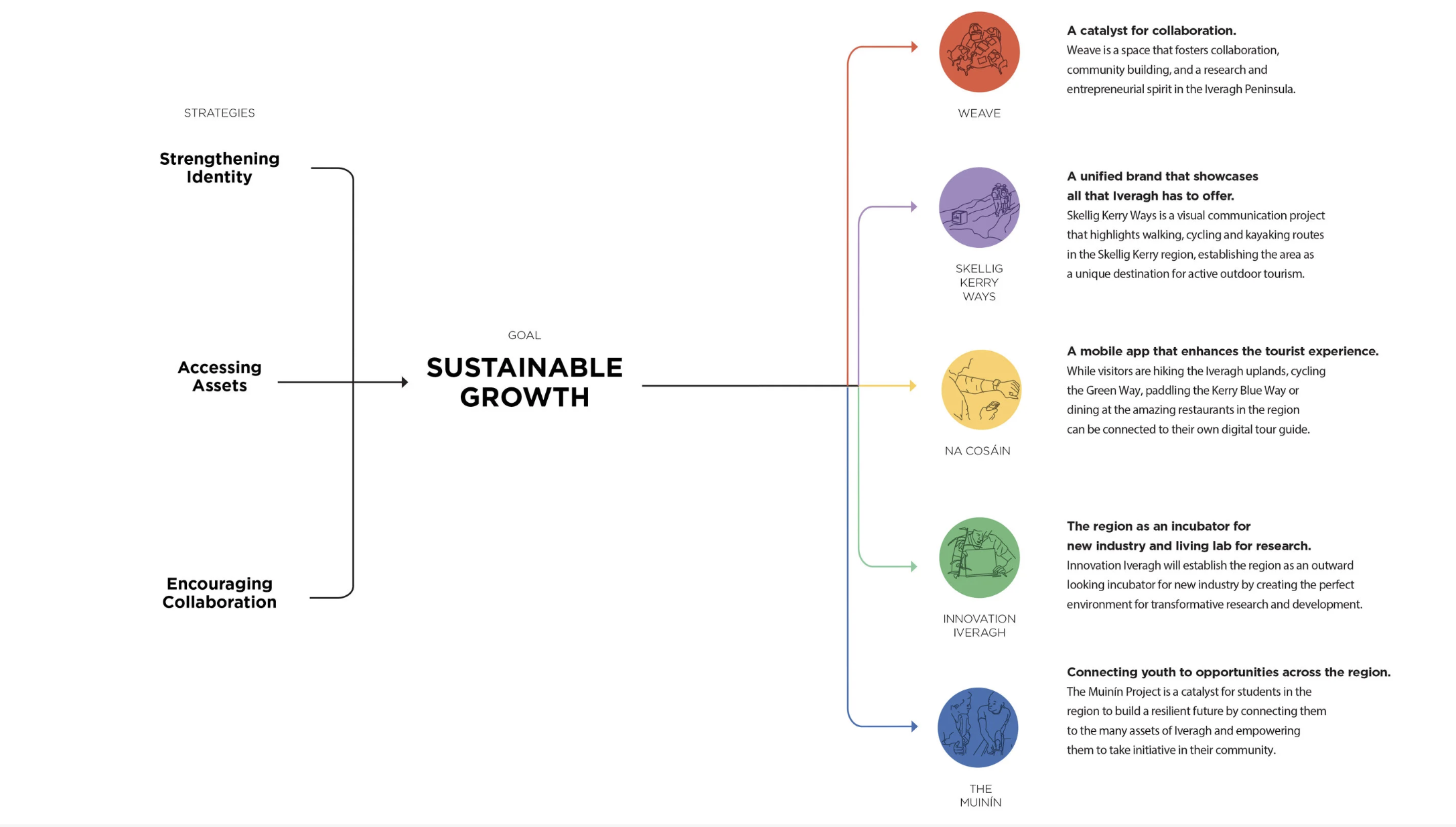 Over the course of one year, the IwB team facilitated multiple charrettes, co-design session and interviews with the residents of Iveragh. This collaborative research uncovered the key insights that drove the design of an integrated design strategy which focused on establishing economic, environmental and social growth in the region.